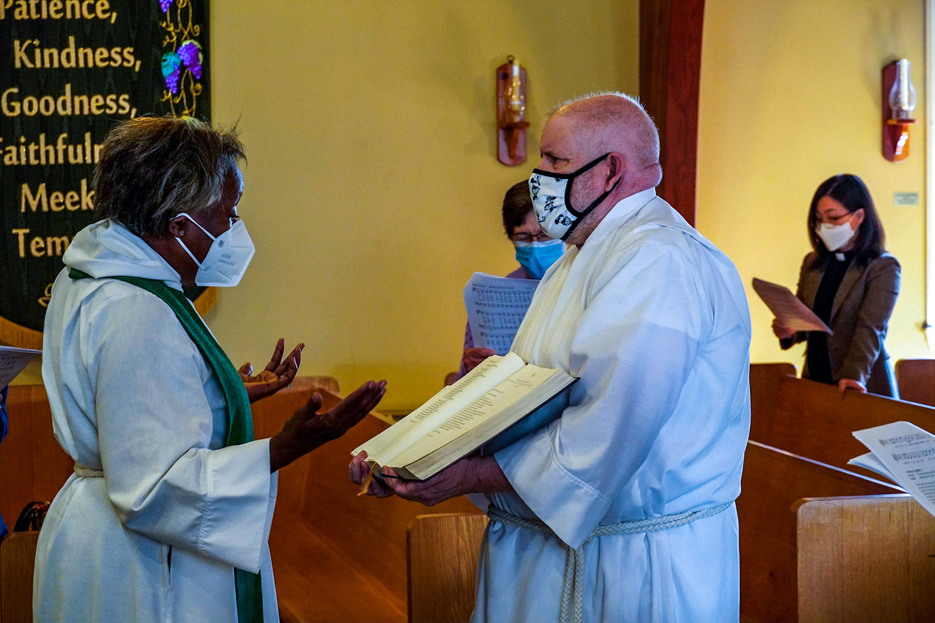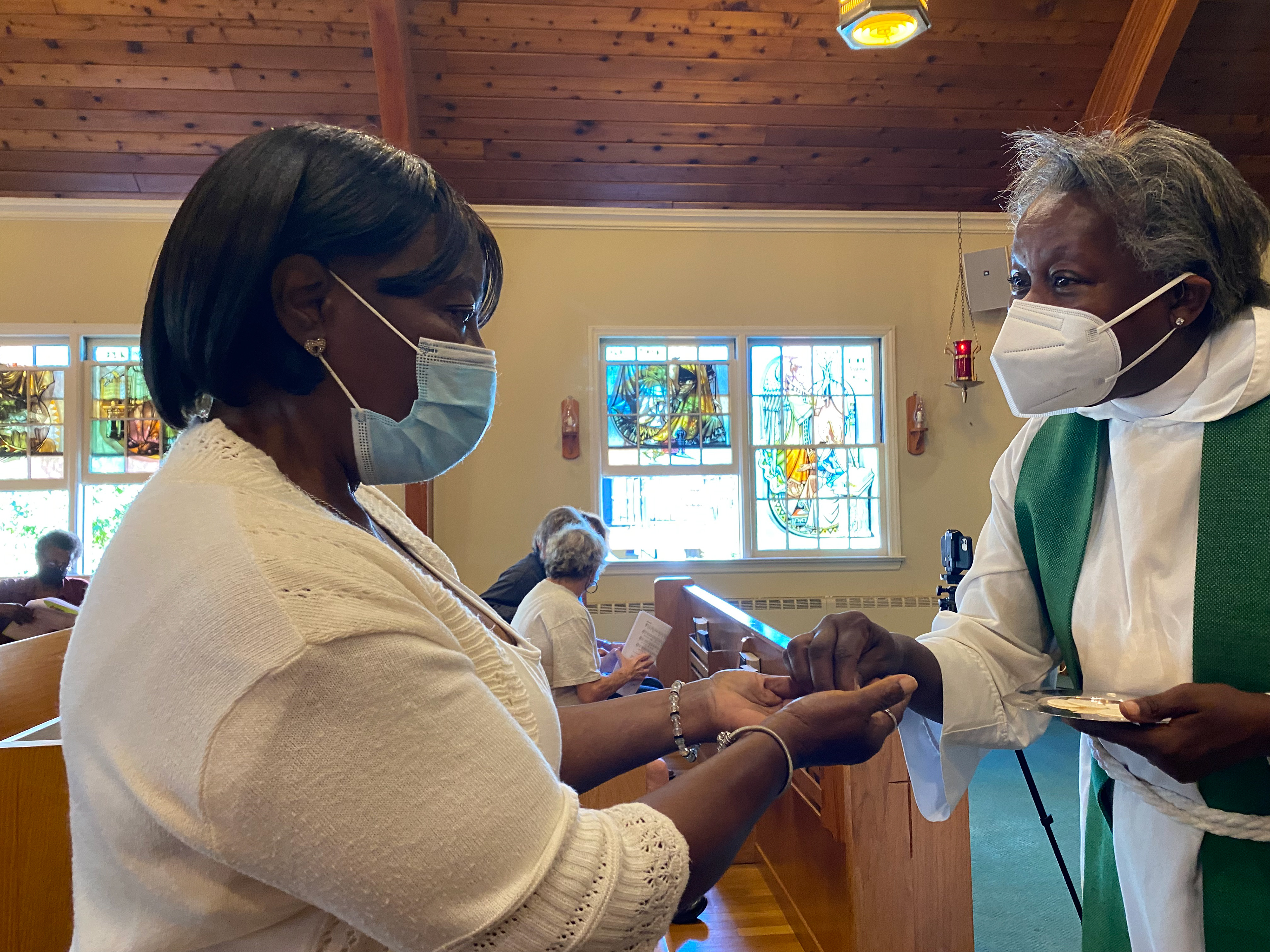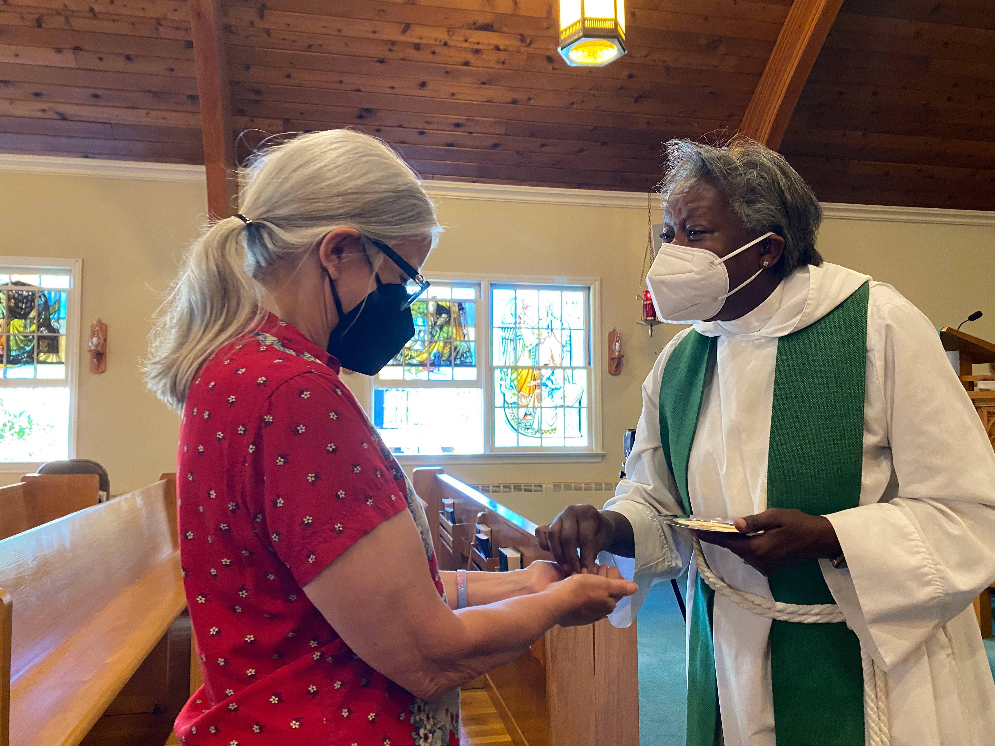 Then, we get to the Meal, which is also called the Eucharist (it is Greek for thanksgiving), also known as the Lord’s Supper, or Holy Communion. Everyone is invited to come forward and receive the Bread (a small wafer) and the Wine (it’s real wine, 18%, which is strong enough to kill germs on the cup, although we are not encouraging drinking at this time). You can dip the Bread in the chalice (cup) holding the wine, and return to your seat.